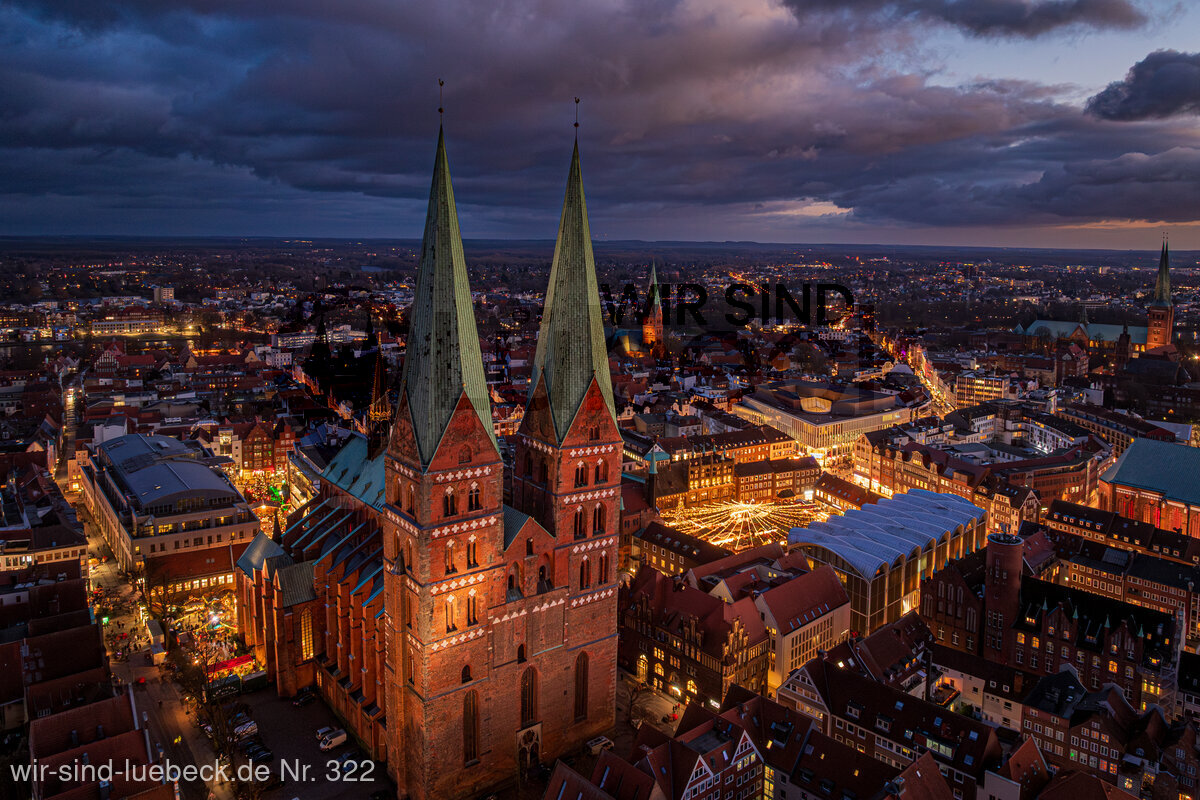 Weihnachtsmarkt Lübeck, die Marienkirche umgeben von mehreren Weihnachtsmärkten.